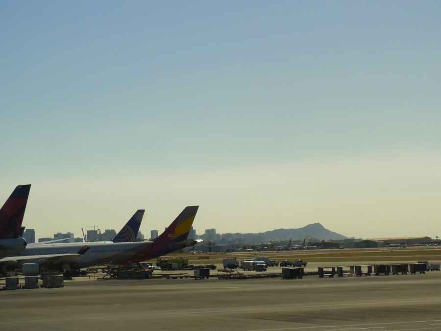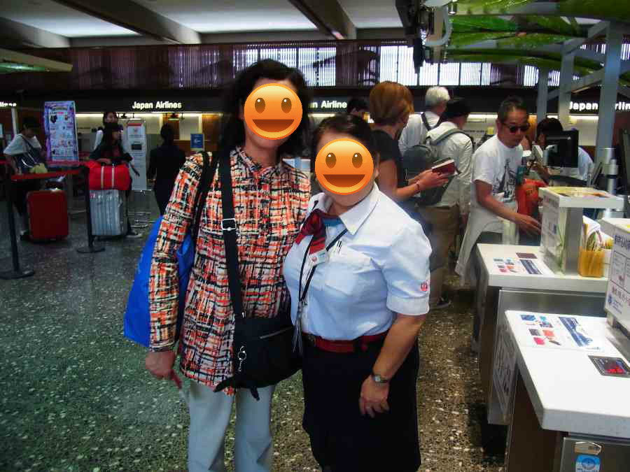 ホノルル空港のチェックインカウンターで