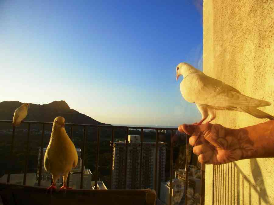 最終日の朝 ホッホーとラナイの手すりにハトが来ました