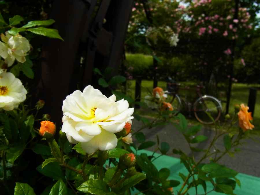 出勤途中の公園のバラのトンネルがキレイ もう少し上まで伸びれば完成ですね