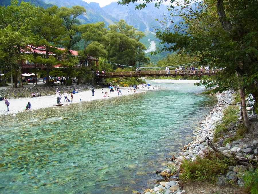 連休中なので河童橋周辺も大混雑 アイスクリームに大行列 バス乗り場も大行列