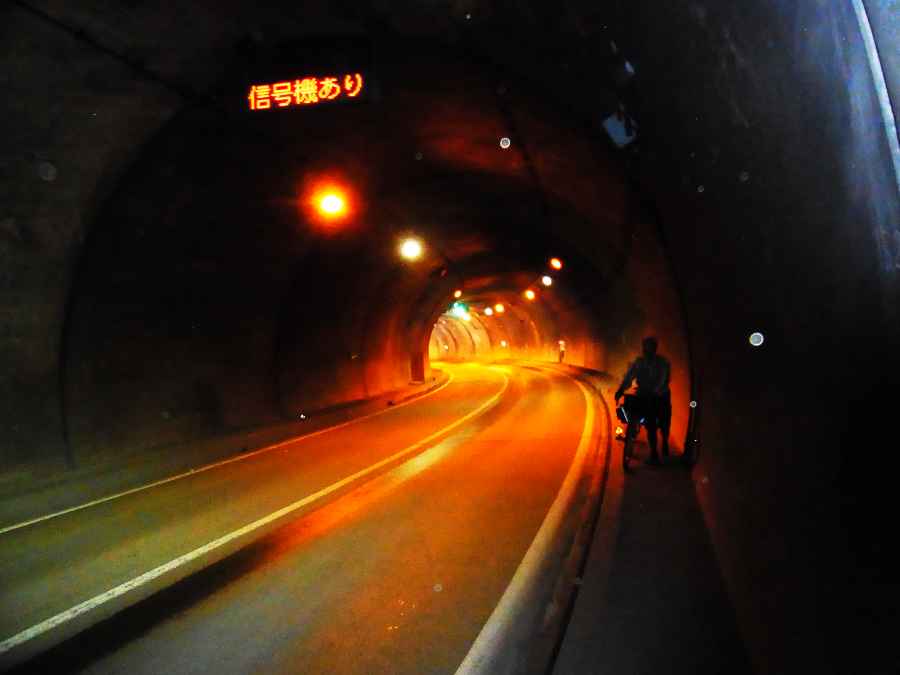 釜トンネルはバスとタクシーと許可車両の轟音と排ガスの中を登ります