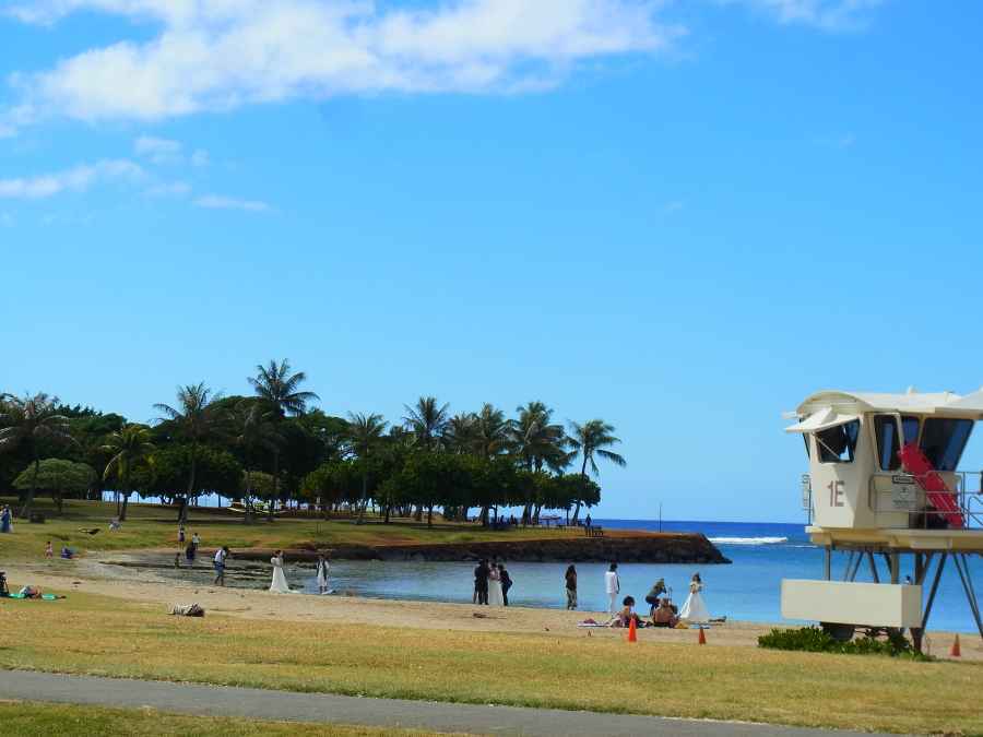 このビーチはウェディングフォト撮影のメッカですね