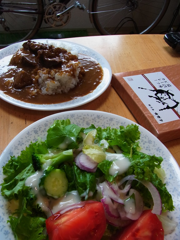 11時に出社 私のランチタイムメニューは前沢牛のカレー 我ながら盛り方が雑!w