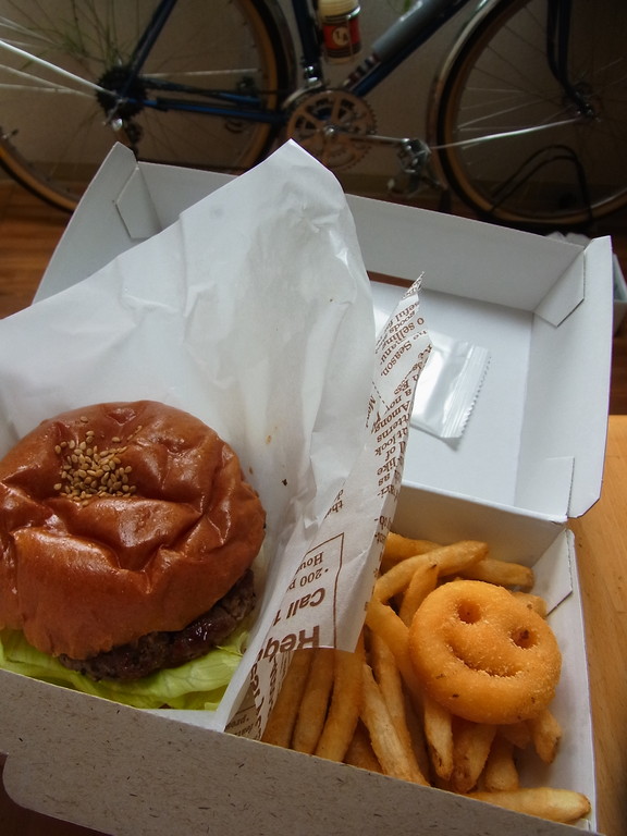 昼休み中に町内の友人がちょっと高そうなハンバーガー持って来てくれました