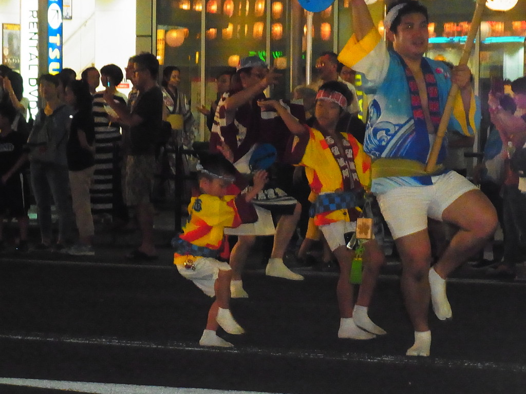 山車の上からお菓子などをばら撒くので人が群がっていました