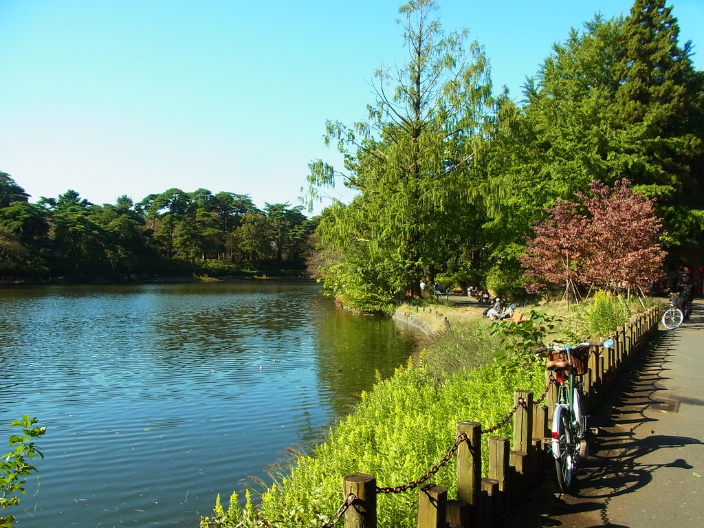 楷の木は色付いたかな? 池の向こう側の県立博物館に行ってみましたが まだまだでした