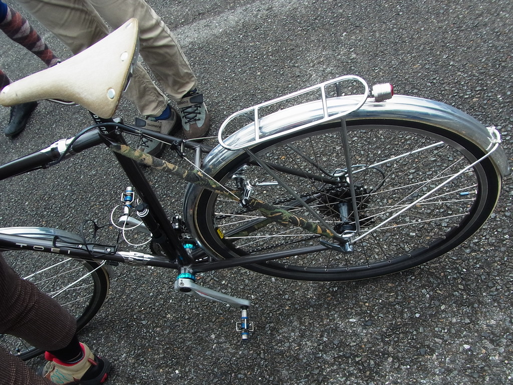頻繁にデモンタ輪行するそうで 軍隊用の迷彩包帯が巻いてあります