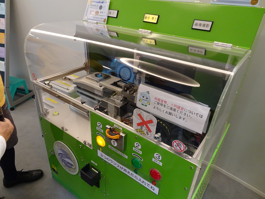 古い硬貨を入れるとすり減り具合を測定してくれる装置
