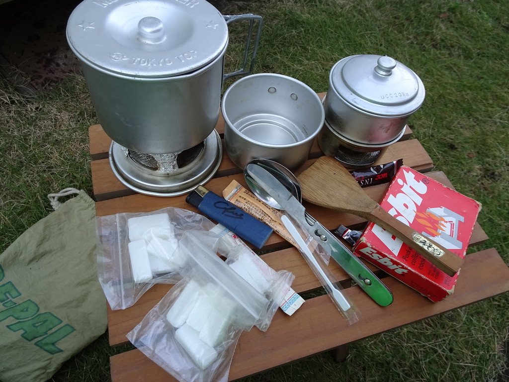 アルコールバーナーも面白いですが、今はガスカートリッジでチタンのコッヘルやシェラカップで沸かしています。