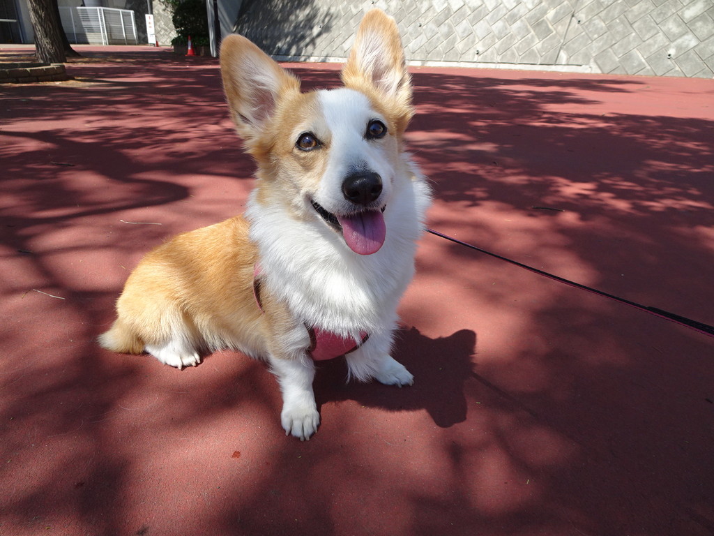 カラッとしてさわやかな朝 自転車通勤サイコー! 公園の中を走っていたらコーギーはっけーん