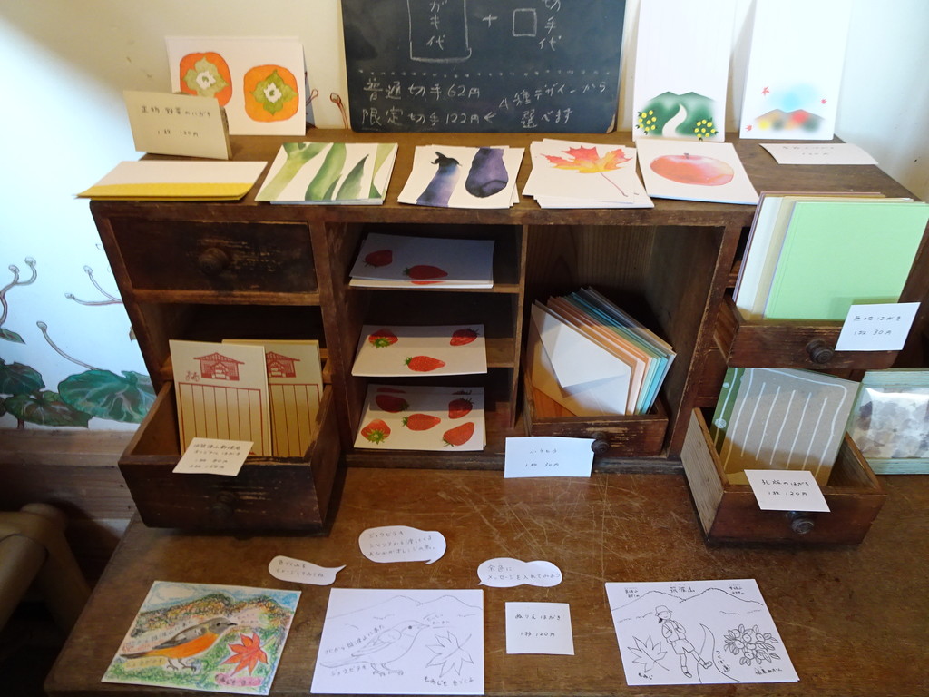 可愛い女性一日郵便局長がいろいろなモノを販売しています