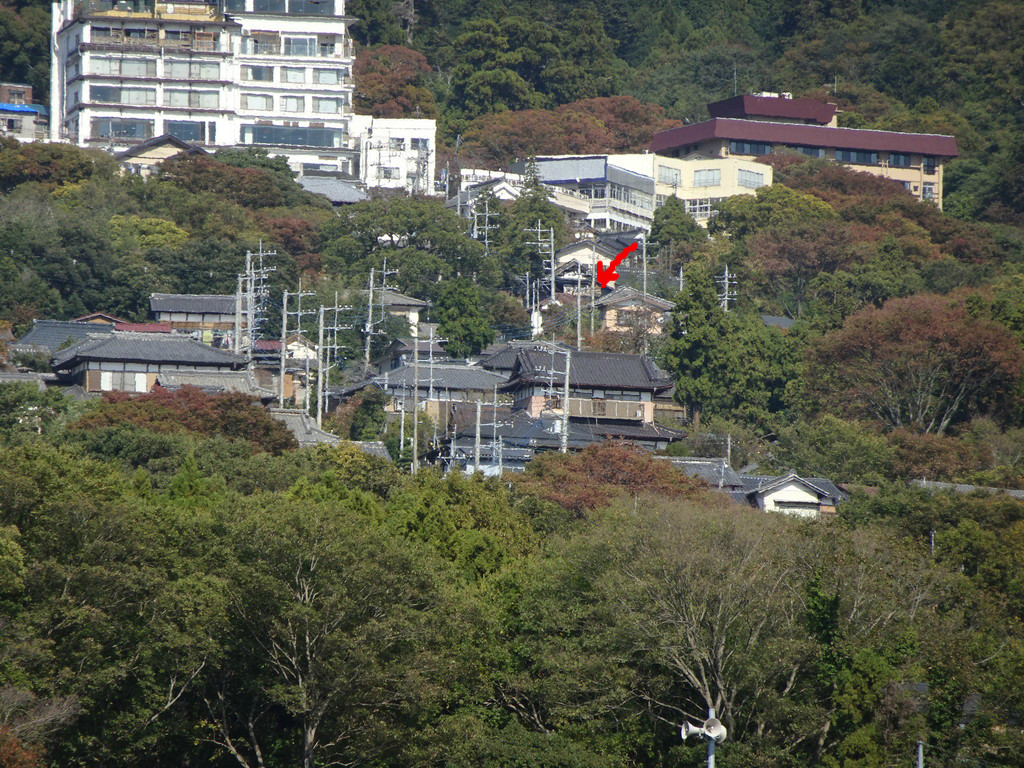 見上げれば 先ほど窓から見下ろしていた古民家カフェが見えます