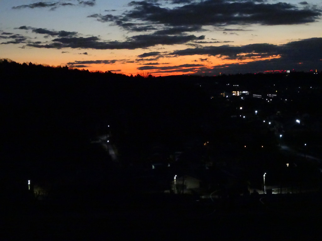 一時間で狭山湖堤防に到着 朝焼けがキレイ