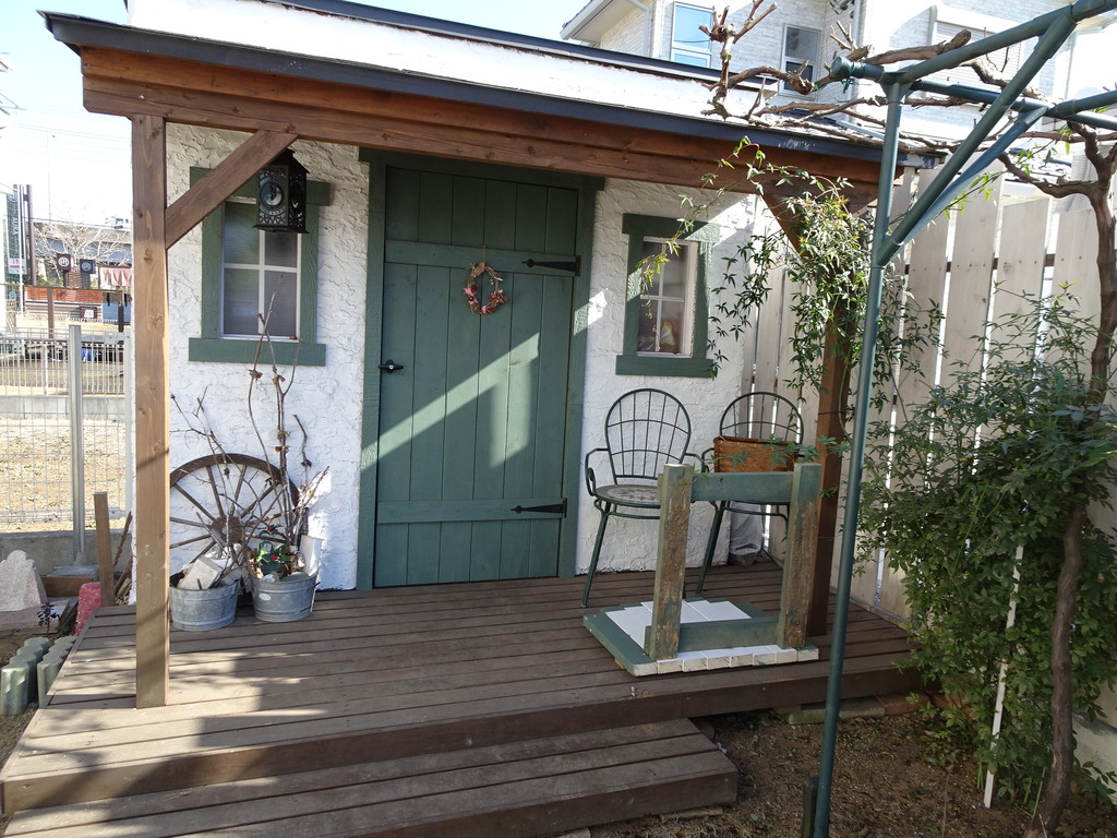 向かいのお宅に頼まれて2X4で作ってあげたという物置を見学