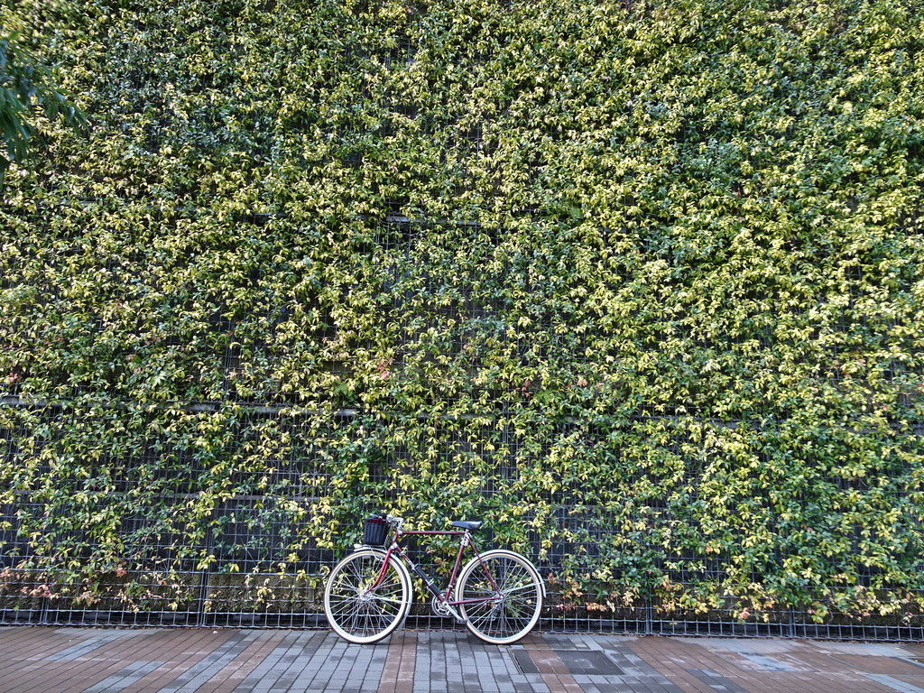 たまに違う道を走ると思わぬ発見 ビルの壁面4階まで見事に緑化