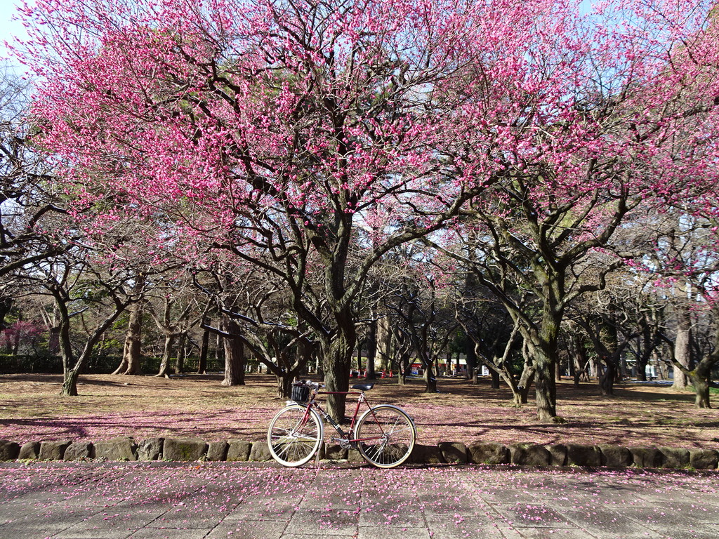 梅園は 雪と梅を狙った三脚を持ったカメラマンが何人もウロウロ