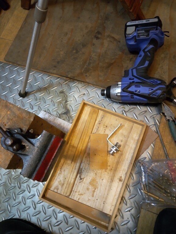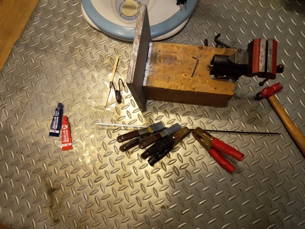 目覚めたら覚えていたので製作開始 金具を曲げて 穴を空けます
